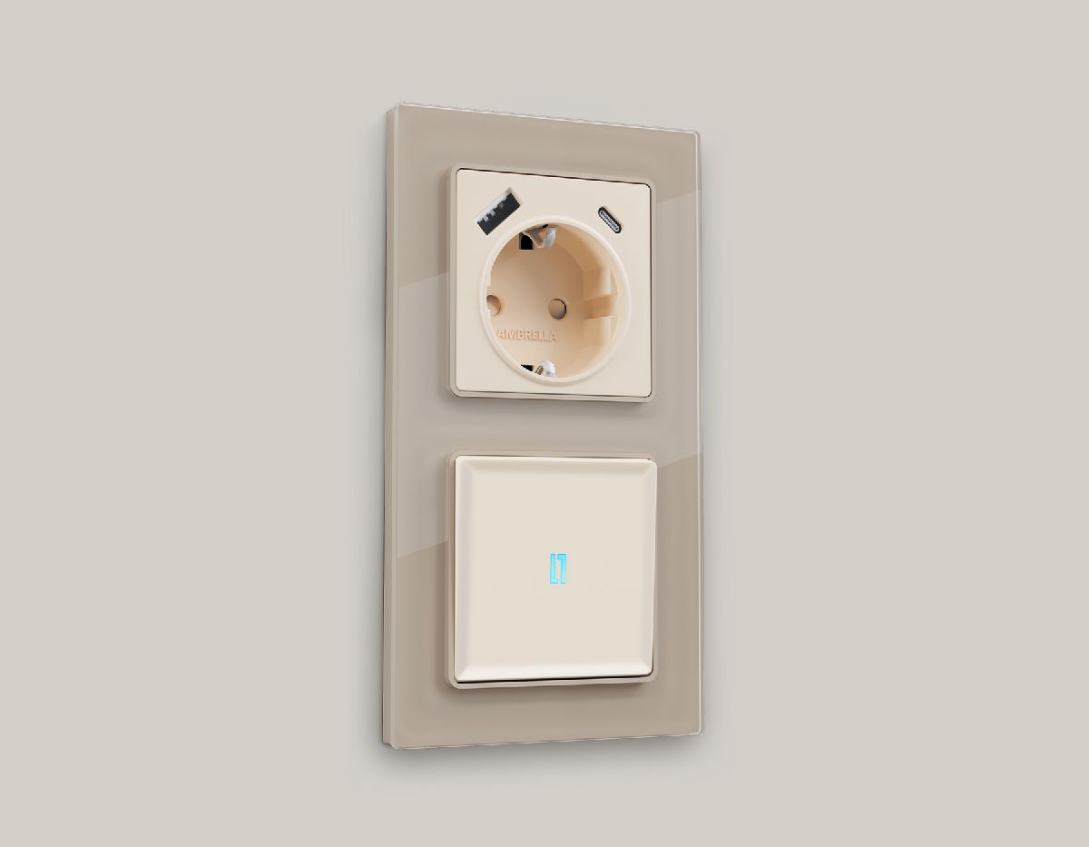 Комплект механизма розетки 2USB A+C 20W (быстрая зарядка) Ambrella Volt Alfa MA911010