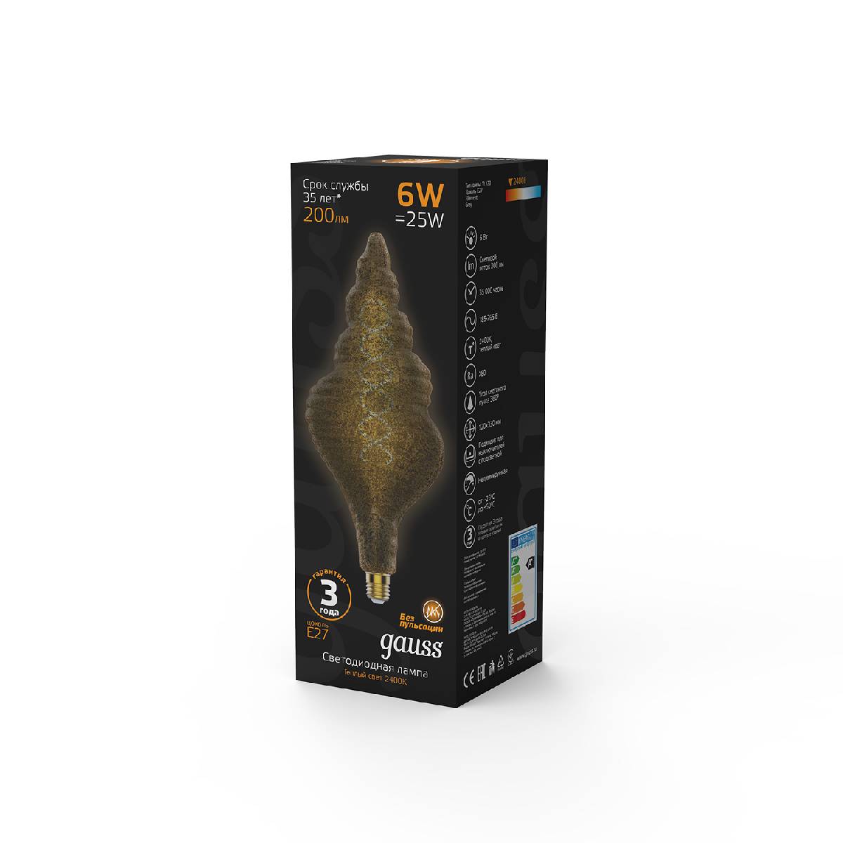 Лампа светодиодная филаментная Gauss E27 6W 2400K серая 166802008