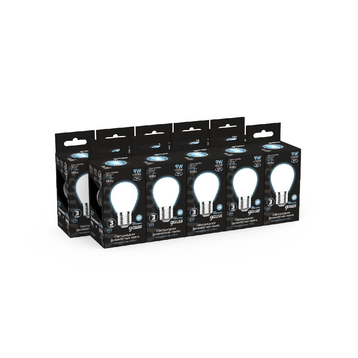 Лампа светодиодная филаментная Gauss E27 9W 4100К матовая 105202209