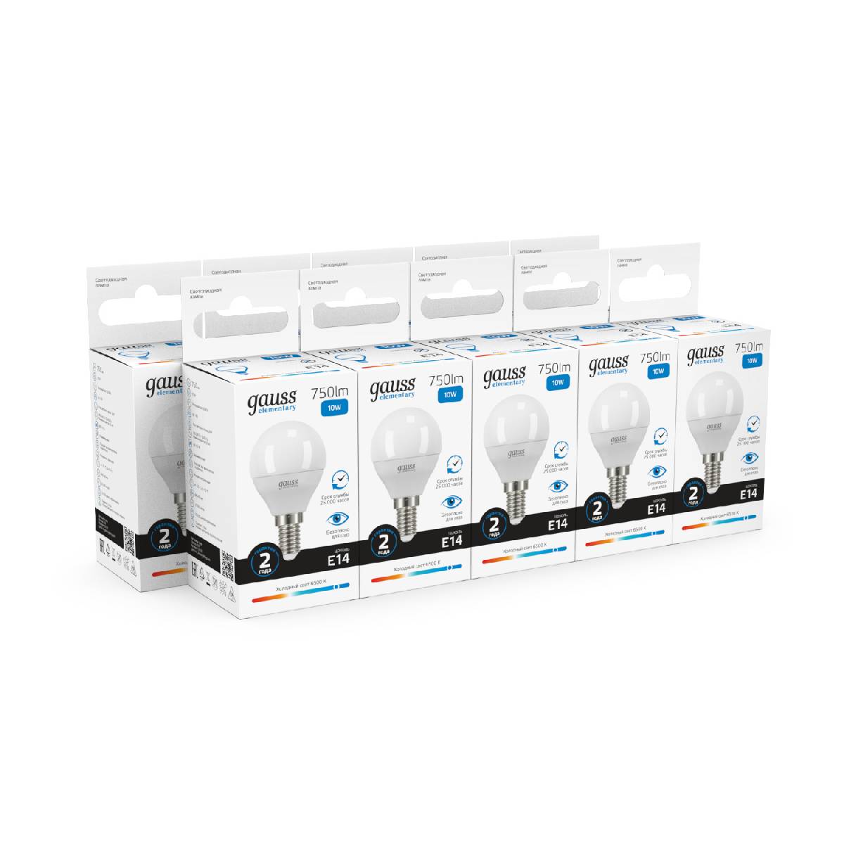 Лампа светодиодная Gauss E14 10W 6500K шар матовый 53130