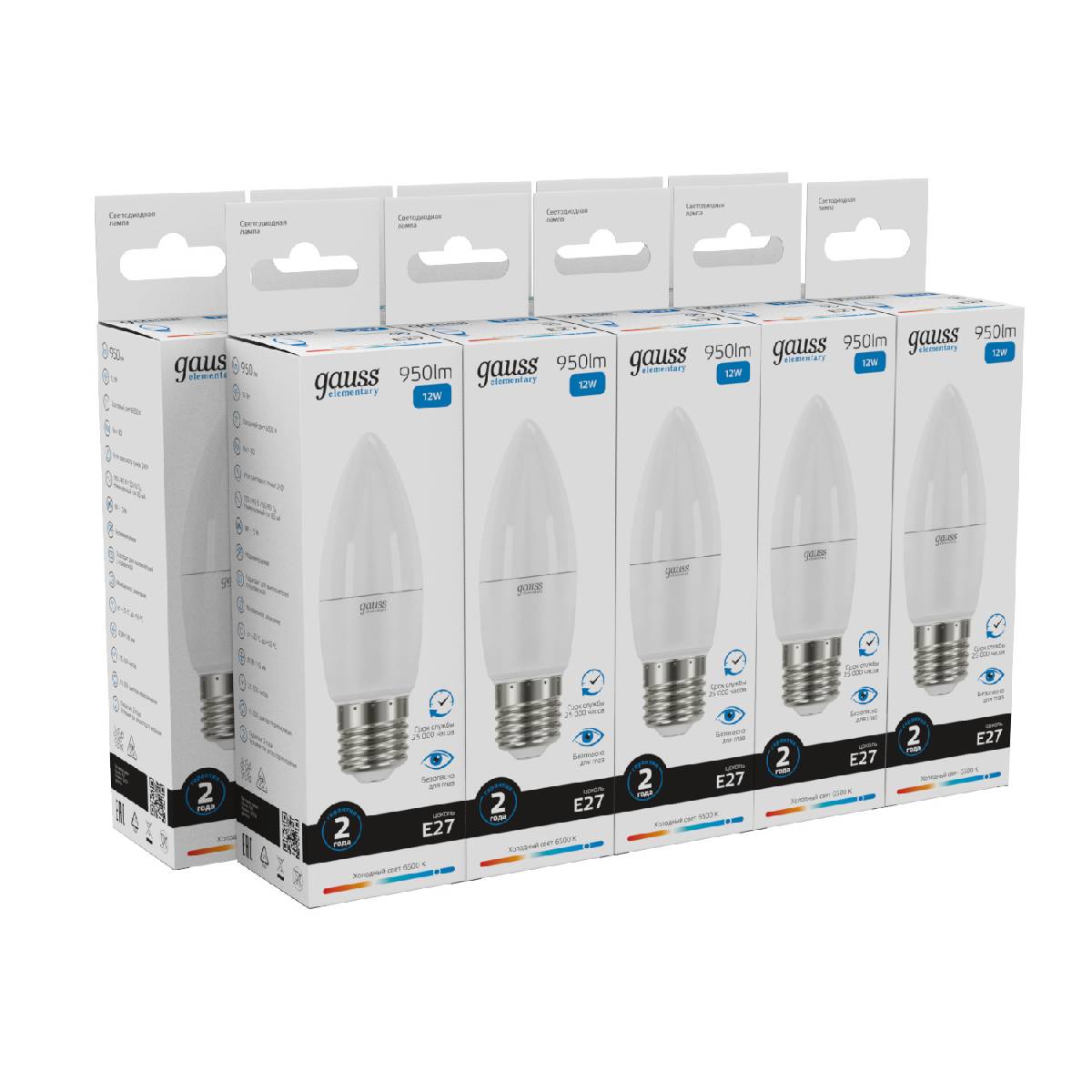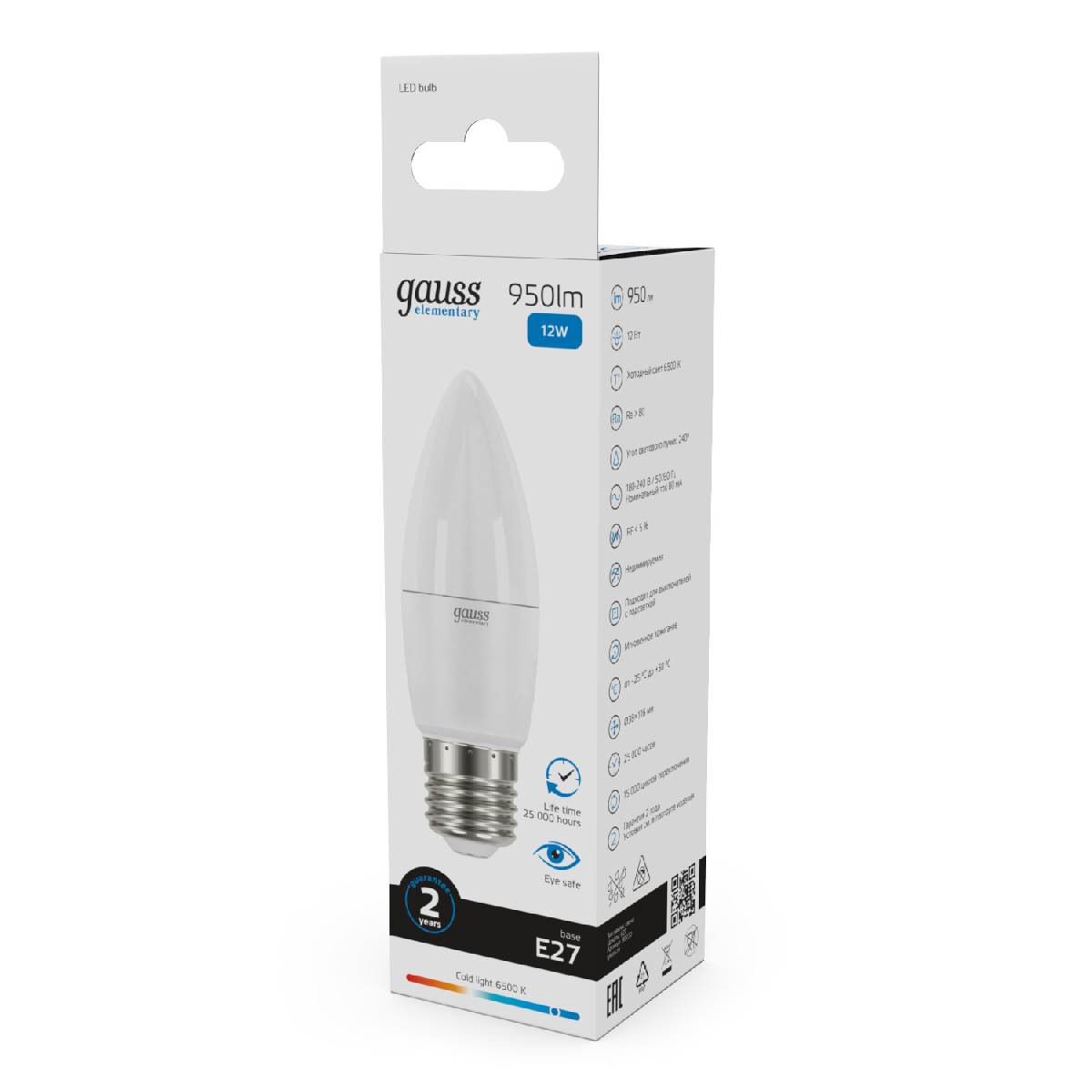 Лампа светодиодная Gauss E27 12W 6500K свеча матовая 30232