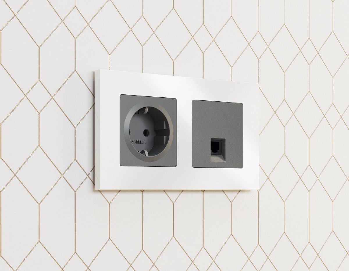 Лицевая панель для компьютерной/телефонной розетки RJ-45/RJ-11 Ambrella Volt Alfa AP6620