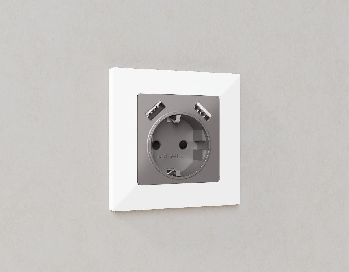 Комплект механизма розетки 2USB A+C 20W (быстрая зарядка) Ambrella Volt Alfa MA911010