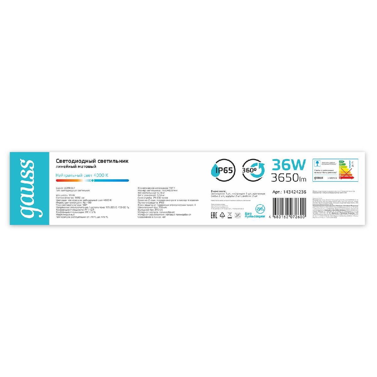 Линейный потолочный светильник Gauss Compact 143424236