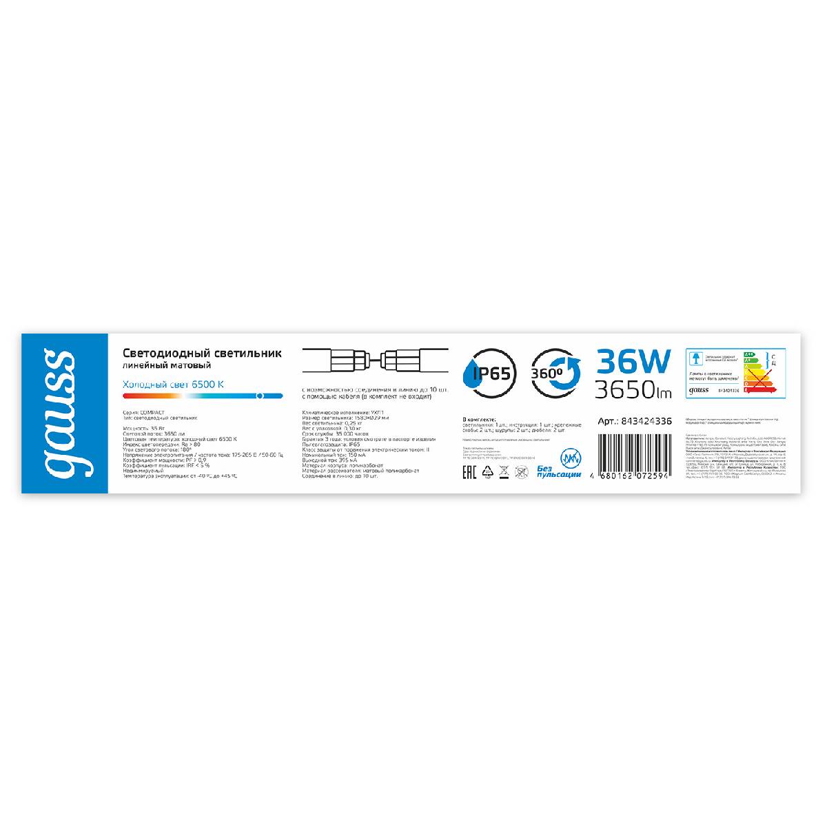 Линейный потолочный светильник Gauss Compact 843424336