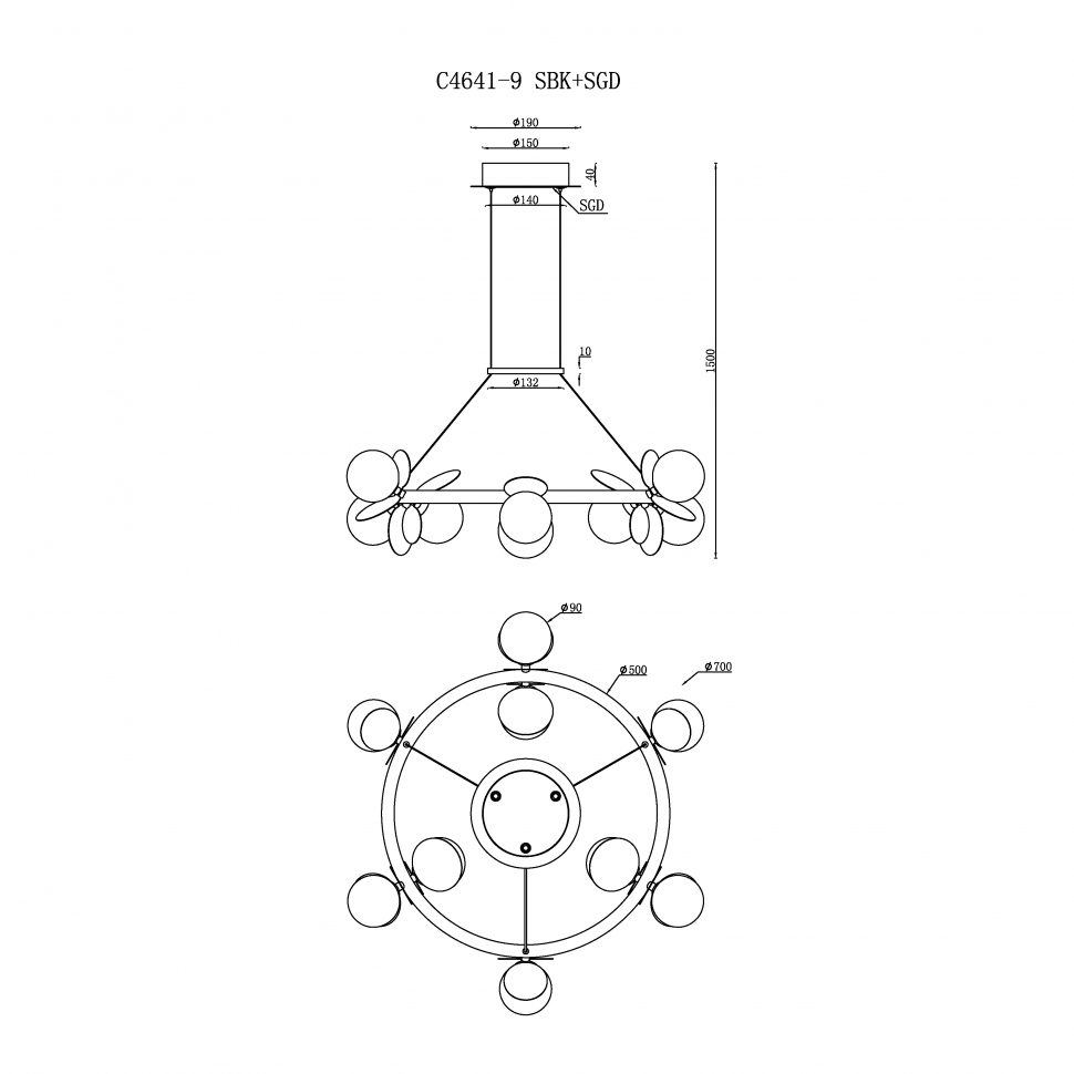 Подвесная люстра iLedex Savage C4641-9 MBK+SGD
