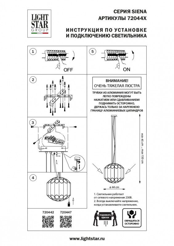 Подвесная люстра Lightstar Siena 720442 132794 ₽ Первоначальная цена составляла 132794 ₽.65800 ₽Текущая цена: 65800 ₽.