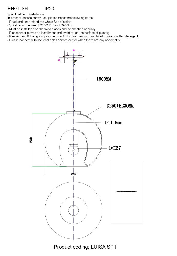 Длина подвеса в мм | 1500 |