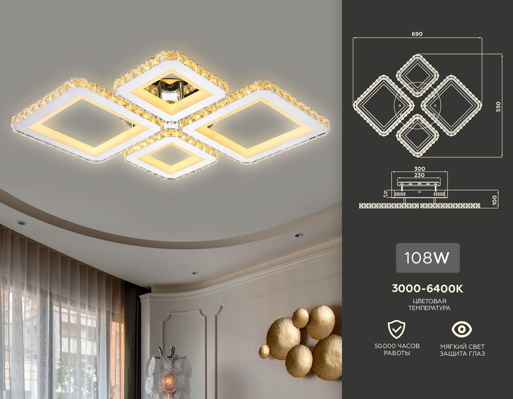 Форма плафона | Квадратный |