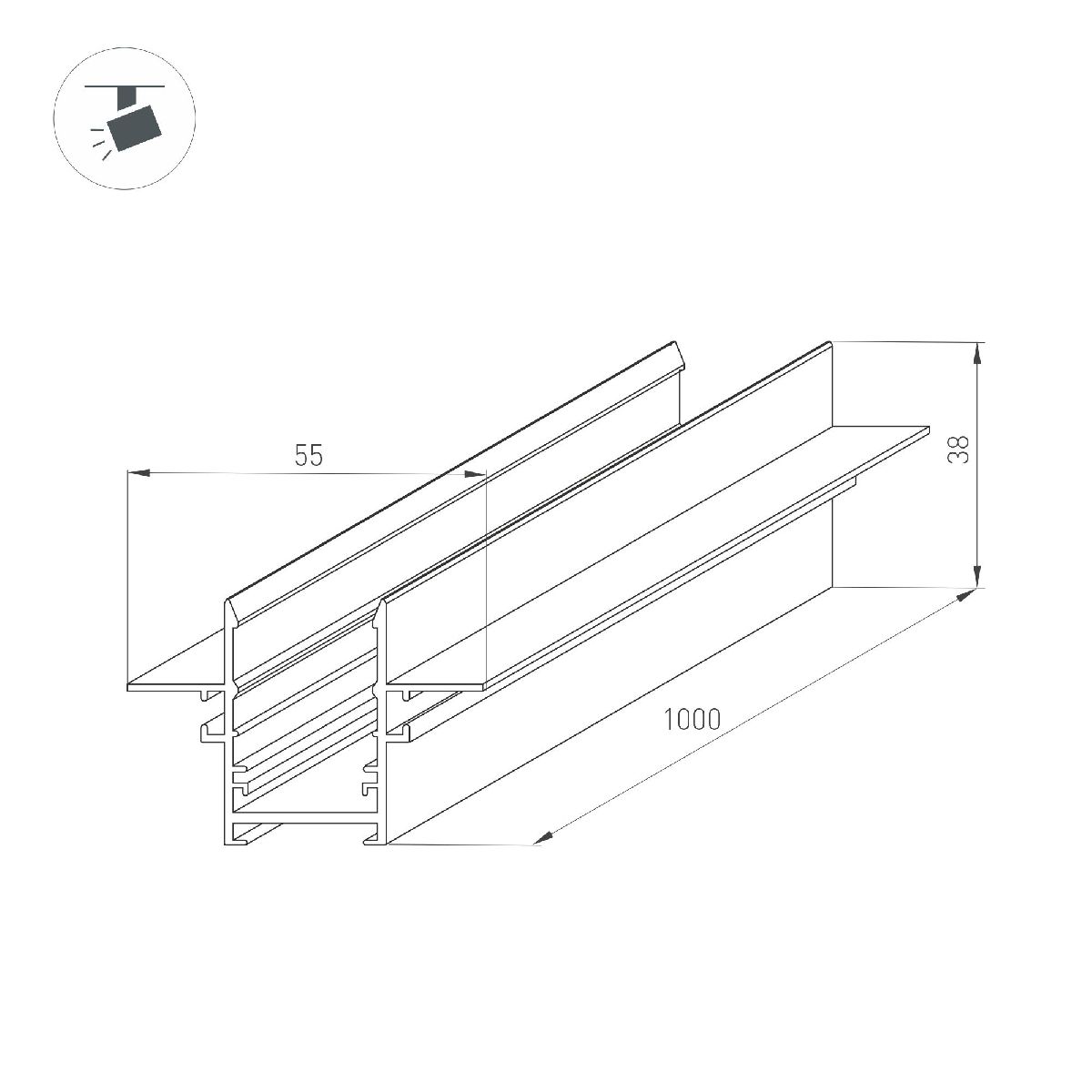 Шинопровод встраиваемый Arlight MAG-TRACK-2538-FDW-1000 046284