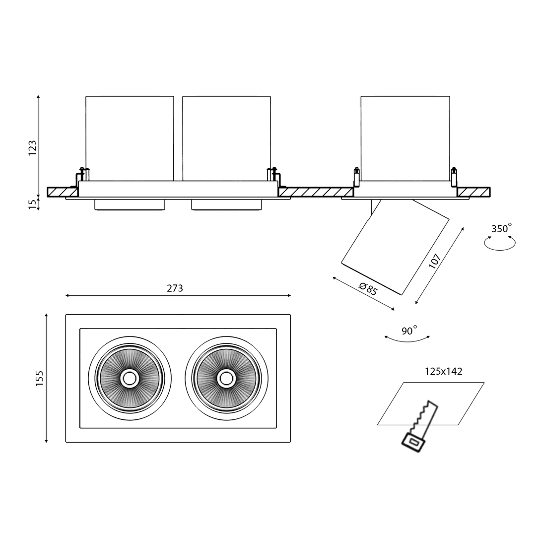 Монтажное отверстие | 142×125 |