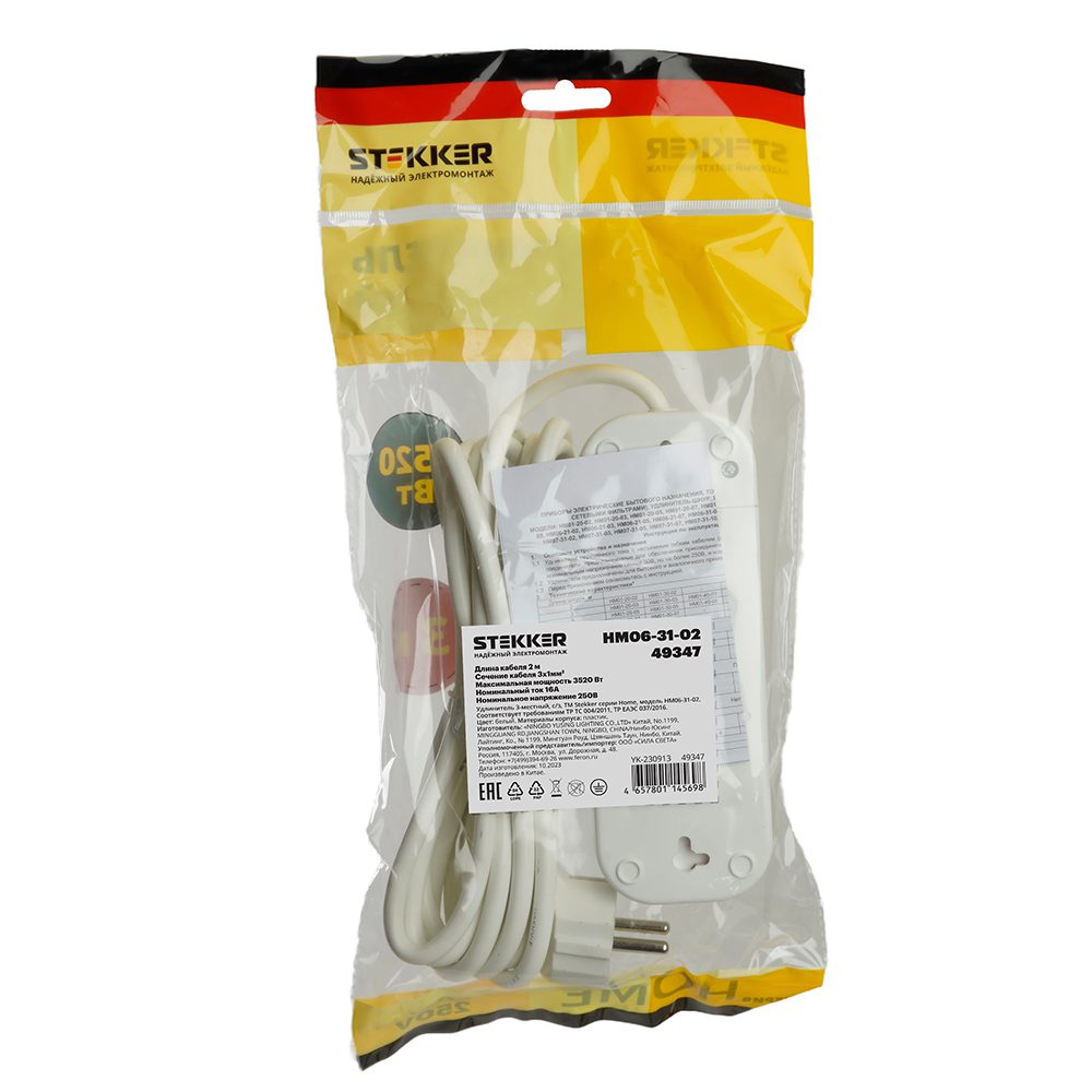 Удлинитель трехместный Stekker Home 49347