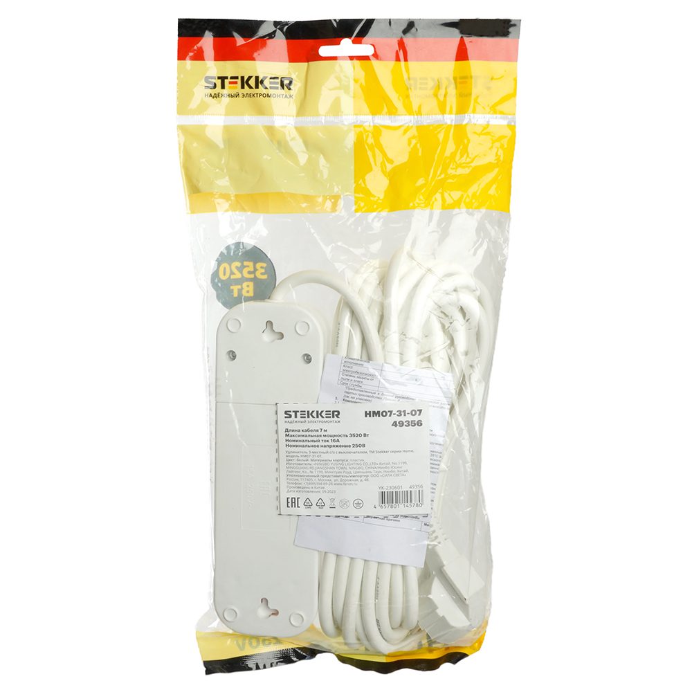 Удлинитель 3-местный с/з с выключателем Stekker Home HM03-31-03 50422