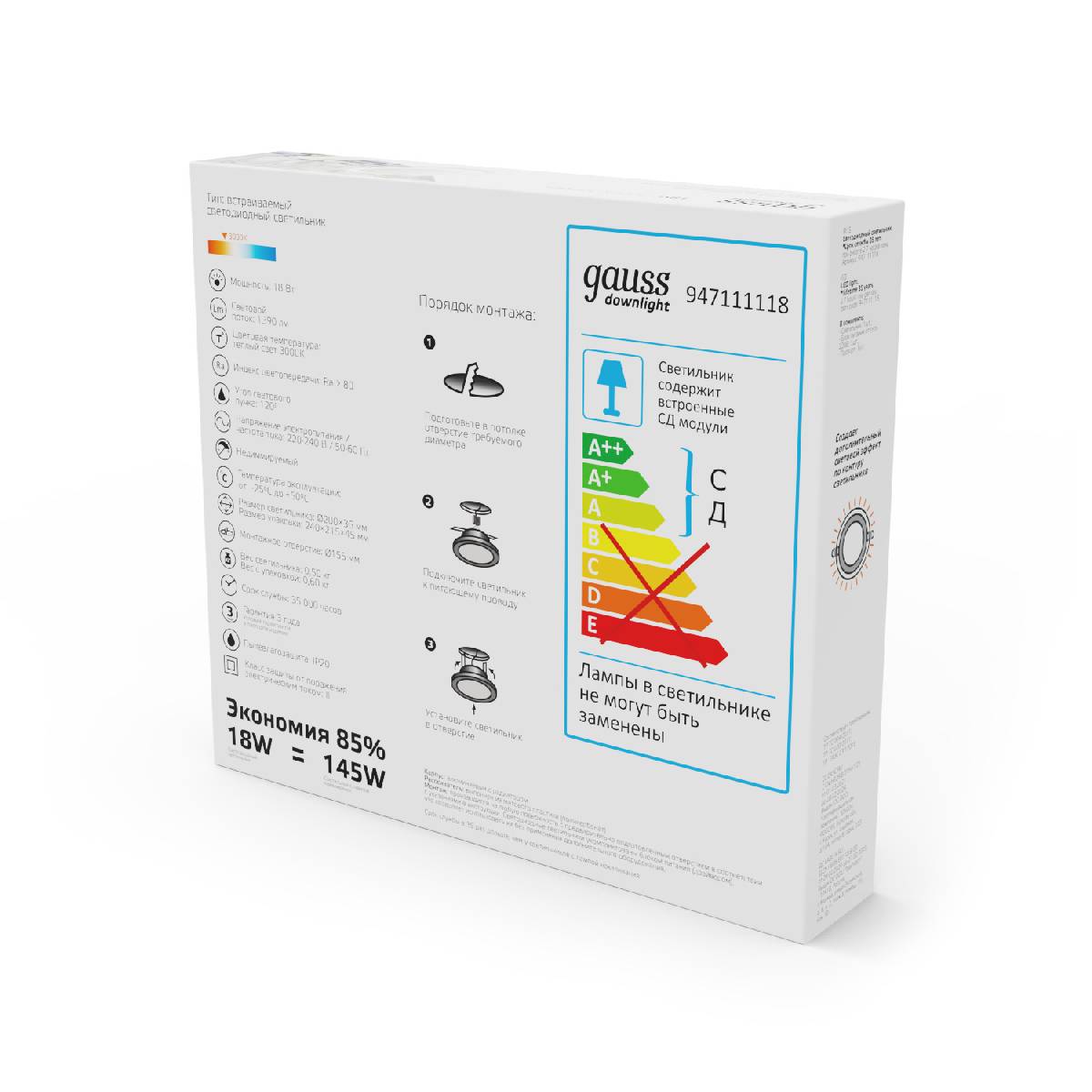 | Общая мощность, W | 18 |