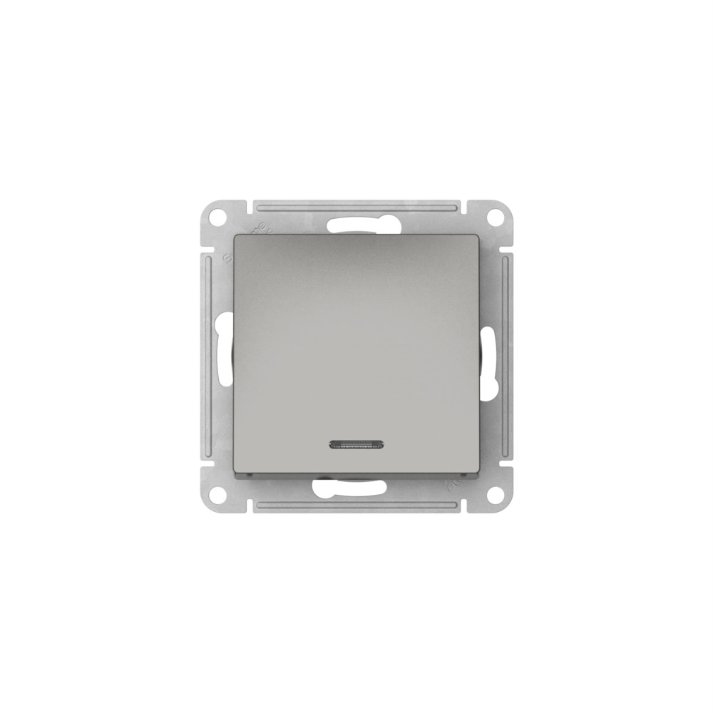 Выключатель 1-клавишный с подсвет.,сх.1а, 10АХ, быстрозажим. клем. Systeme Electric AtlasDesign Сталь ATN000913S