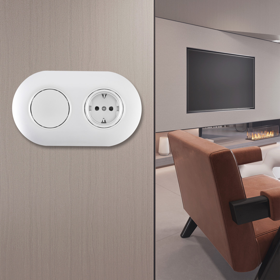 Круглая розетка двойная (двухпостовая) с/з и шторками Arte Milano SET08-2-41-1x2 white